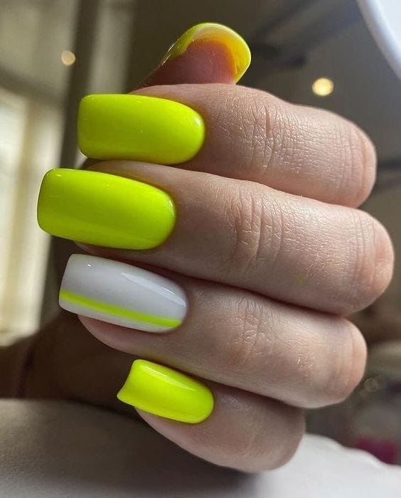 Combining neon green with sleek black tips, these nails redefine sophistication with a touch of edge. The striking contrast not only captivates the eyes but also offers a versatile approach to summer styling. It’s a testament to minimalist artistry with a twist, catering to women who appreciate avant-garde elements in their everyday look.
