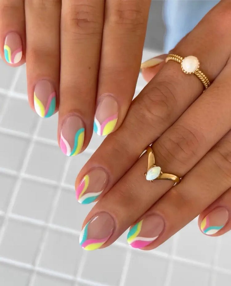Catch the wave with this bright, neon design that’s as lively as a day at the beach. With bold waves of blue and pink, these nails are a splash of fun for any coastal adventure or a day spent lounging by the pool.