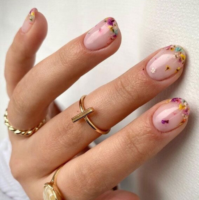 Here’s a fun throwback to the polka-dotted playfulness of yesteryears, updated for Summer 2024. The soft pink backdrop adorned with blue and white petals brings a sense of holiday joy and innocence. These nails are ideal for the playful at heart, ready to indulge in summer’s simple pleasures — think picnics in the park and barefoot walks along the shore.