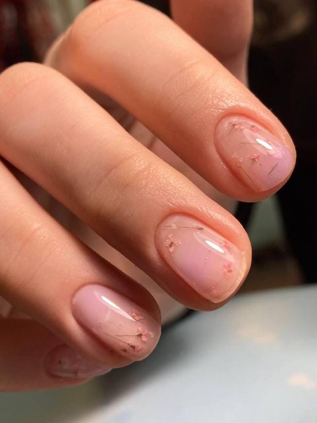 On nails filed to a simple, natural square shape, the faded petals suggest a timeless elegance. The design is reminiscent of a vintage rose garden at dusk, with subtle hints of gold that catch the summer light. It’s a manicure that speaks to those who prefer a whisper of charm to a shout of glamour, perfect for a serene holiday evening.