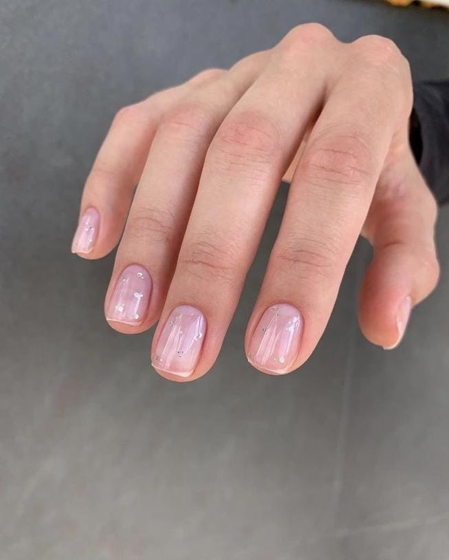 Sometimes the faintest whisper carries the strongest message. This next style is a whisper of color, a barely-there pink that exudes a healthy glow. The short nails are buffed to perfection, embodying the purest form of natural beauty. It’s a look that speaks volumes in its simplicity, ideal for those who seek to highlight their natural allure.