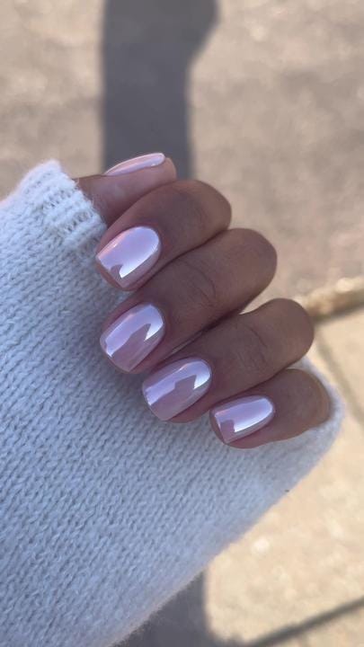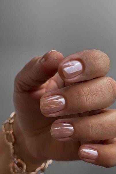 Short square nails don a nude chrome polish that exudes soft sophistication. The reflective surface adds depth to the simple shape, making it an excellent choice for everyday elegance. It’s a testament to the enduring appeal of understated beauty.