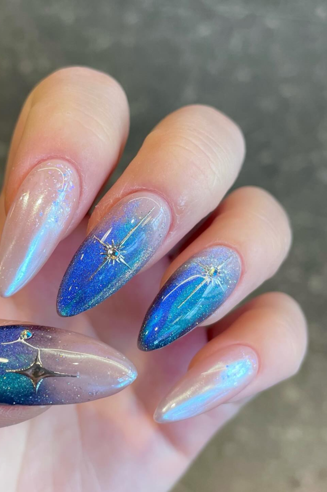 Blue Shimmer Galaxy Nails