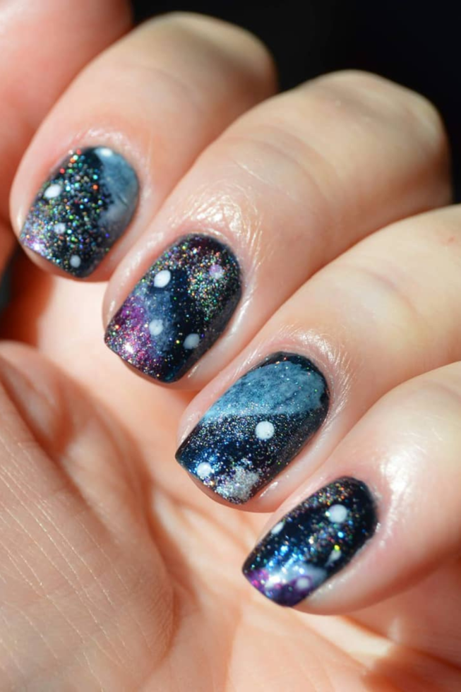11. Glitter Galaxy Nails